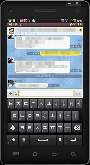 1. 한글입력시 폰의 키보드가 나타납니다.